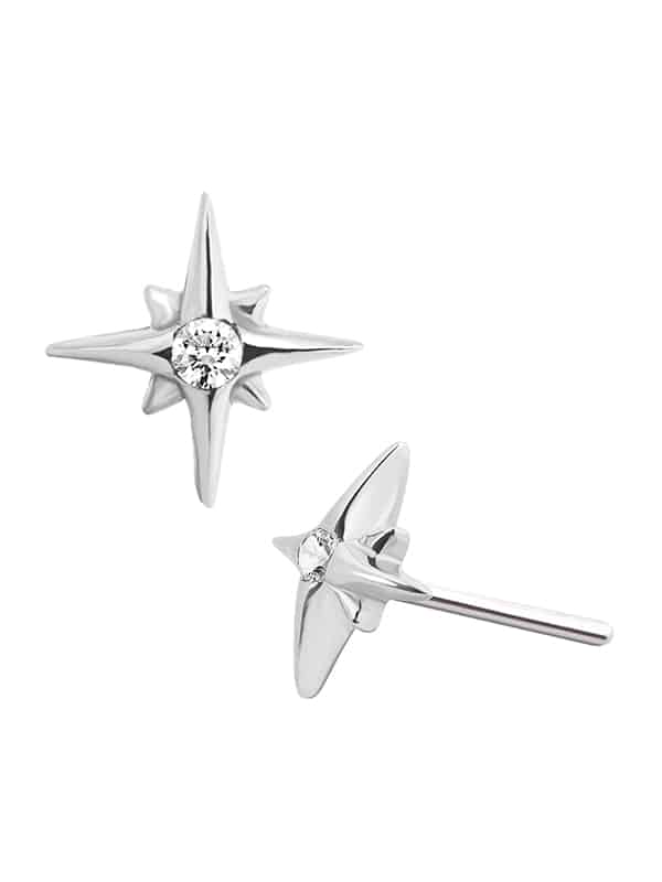 Northern Star Push-In Stud Earring, 14k White Gold is a Piercing Jewellery with a Flat Back Labret Bar.